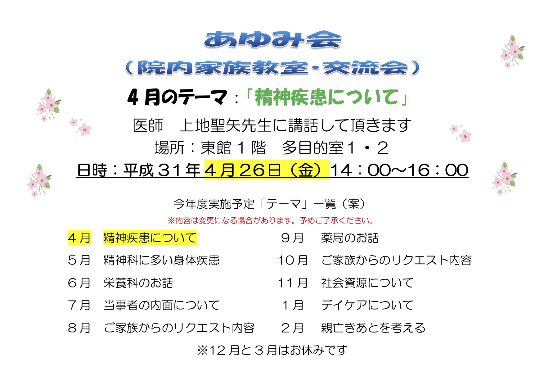 終了【4月】院内家族教室・交流会「あゆみ会」
